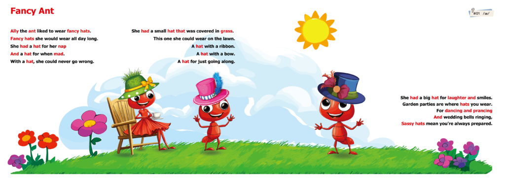 “cat / hat / bat” のように、同じ部分と違う部分をくり返す韻は、音の微妙な違いを聞き分ける力を育てます。これはのちの「読む」「書く」力の基礎にもつながります
